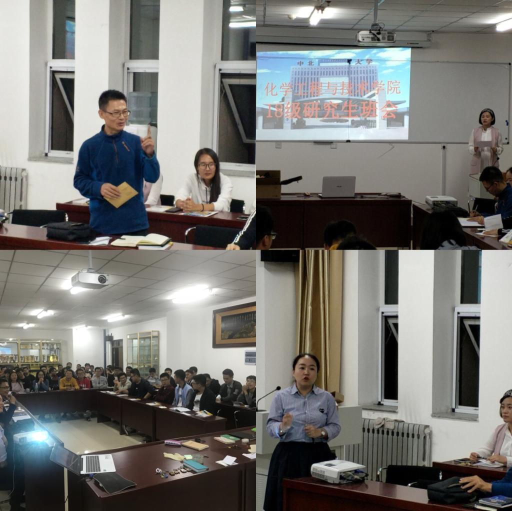 9月10日晚上7点半,中北大学化学工程与技术学院2018级研究生新生于科学楼206会议室组织召开了一场别开生面的新生入学教育班会。参加本次班会的有王艳红老师、马忠平老师、贾苗苗老师和全体18级研究生新生。