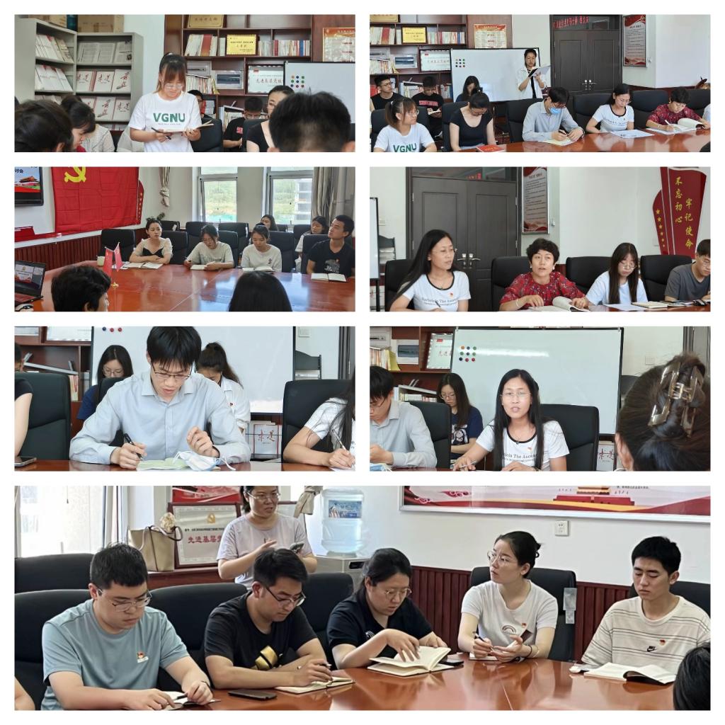 随后,与会同志们进行了学习心得分享,其中贾苗苗老师提到:今年是“千万工程”实施的20周年,“千万工程”持续向纵深迈进,形成了一系列行之有效的做法,得益于有效的规划及实行,对于个人而言,我们应该在做到既规划好大目标,又要计划好小目标;门吉英老师表示:通过此次学习,领会到发展离不开两个方面,一是科技强国,我们要时刻关注国家发展所提出的“新方向、新需求”,二是文化强国,在短视频盛行,娱乐过多的现在,建议大家书本代替手机,从每天变成习惯,充实自己;赵林秀老师说到:身边的汾河四期工程可以清晰地感受到环境的改变,当我们每个人都改变一点时,就会发现人文环境、生态环境等都会发生巨大的改变;李宇强老师指出:集中研讨谈感想不能泛泛而谈,要理论结合实际,不能中空而没有内核,并说到,我们不应该局限在自己所学的专业中,要放宽视野;学生党员付艺婷同志说到:深刻感悟到“听党话,跟党走”不仅仅是一句口号,更是做成事、办好事的关键所在,作为一名学生党员,我们要牢记“为人民服务”的宗旨,不断提升自我服务意识,在党的引领下,做自己应有的贡献;石俊丽同志表示:“文化传承”要做到以文化建设为重点,做到创新性转化,要积极参加文化传承和宣传活动。