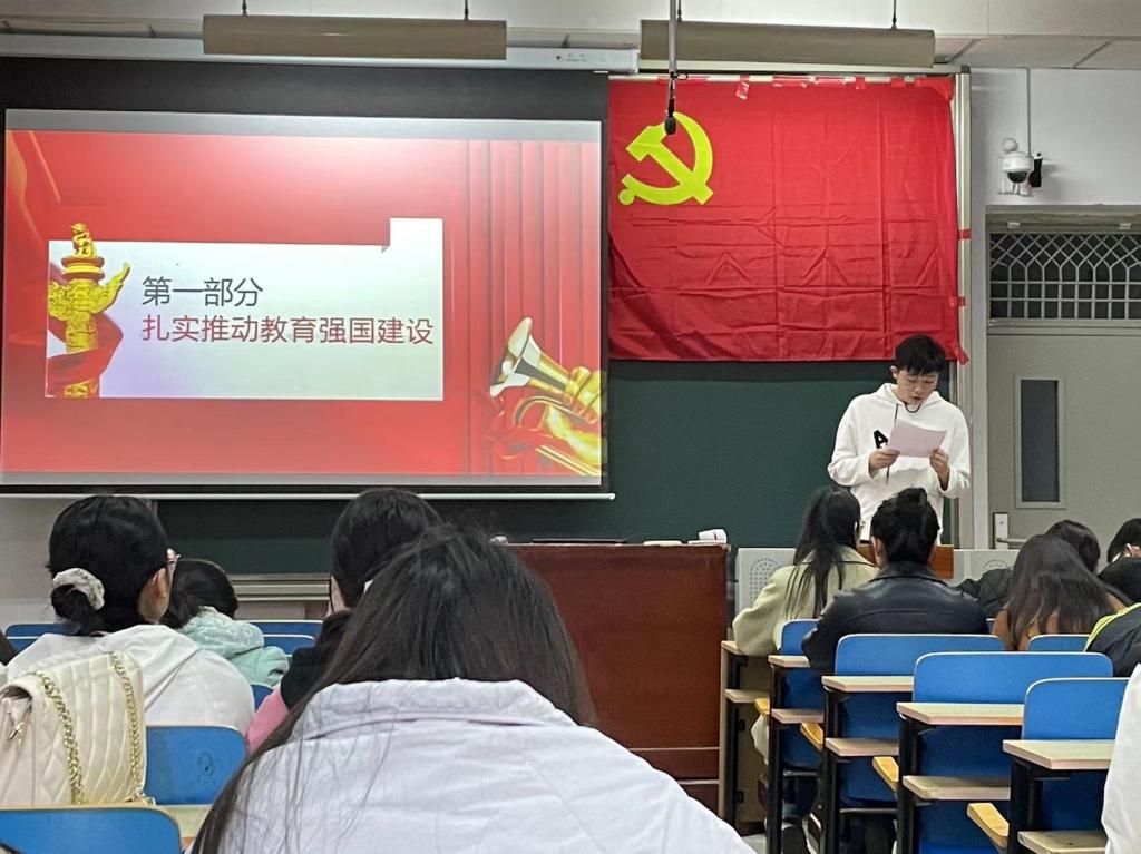 首先,王鹏飞同志以习近平总书记的重要文章《扎实推动教育强国建设》为引,向大家介绍了建设教育强国的背景与重大意义。建设教育强国,是全面建成社会主义现代化强国的战略先导,是实现高水平科技自立自强的重要支撑,是促进全体人民共同富裕的有效途径,是以中国式现代化全面推进中华民族伟大复兴的基础工程。以党员作表率、当模范,争当先锋“带动学”,结合学习理论心得及自身体会,谈思想、谈认识,话成长、话收获,持续从党的创新理论中汲取精神养分,感悟思想伟力。