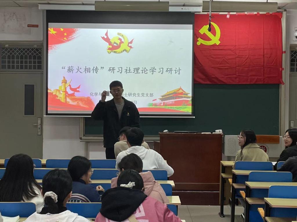 为不断提高学生党员和入党积极分子的思想水平及政治素养,2023年11月9日下午15:00在11110H教室,化学与化工学院硕士研究生党支部“薪火相传”红色研习社举办理论学习研讨会,采取支部促学、党员领学、学员自学的“多学联动”方式,针对“扎实推动教育强国建设”及“习近平总书记关于网络强国的重要思想”两个主题进行集中学习,努力在以学铸魂、以学增智、以学正风、以学促干方面取得实实在在的成效。