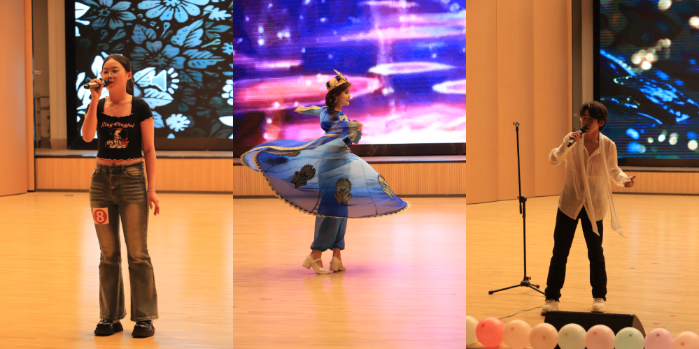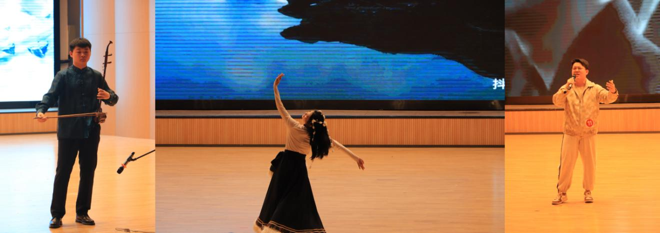 来自各学院的选手们通过不同类型的舞蹈、歌曲、器乐等多种表演形式尽显才华,比赛现场欢呼雀跃、掌声不断。刘浩的舞蹈《Whiplash》在强烈的鼓点下激情四射、极具爆发力。王绎宁的一曲《不将就》生动地诠释了当代青年的坚持与倔强。张贵春、梁嘉怡等以古典与现代交织的舞蹈《寄明月》,将月光下的思念化作翩跹舞步,如梦似幻。高新博和符帅两位同学对《意外》这首歌进行了独特诠释,他们极具魅力的磁性嗓音将爱情中的遗憾与感慨勾勒得淋漓尽致。Starfish乐队带来的摇滚版《一万次悲伤》,以其独特的编曲风格与充满力量的演唱,把悲伤情绪转化为振奋人心的呐喊,将活动推向了高潮。聂宏图以浑厚嗓音演绎《滚滚长江东逝水》,将历史兴衰的厚重感娓娓道来,使人仿若穿越时空,触摸到那风云变幻的岁月。陈炫舟同学深情献唱《那是你离开了北京的生活》,婉转的旋律如潺潺溪流,淌过时光的长河。而吴峥同学对《来自天堂的魔鬼》进行了大胆改编,通过矛盾交织的旋律展现音乐的多面魅力。选手古再丽努尔·白克尔带来了充满西域风情的舞蹈《舞动西域》,以灵动的身姿与异域韵律,仿佛将广袤沙漠与绮丽风光浓缩于舞台之上。