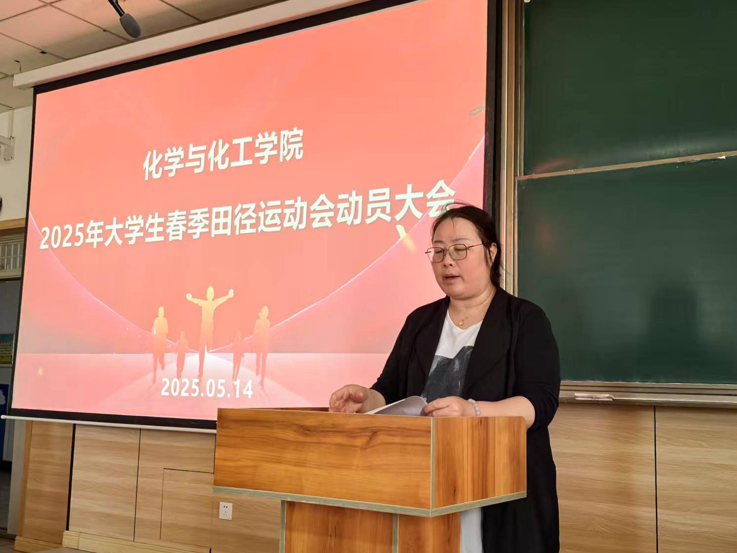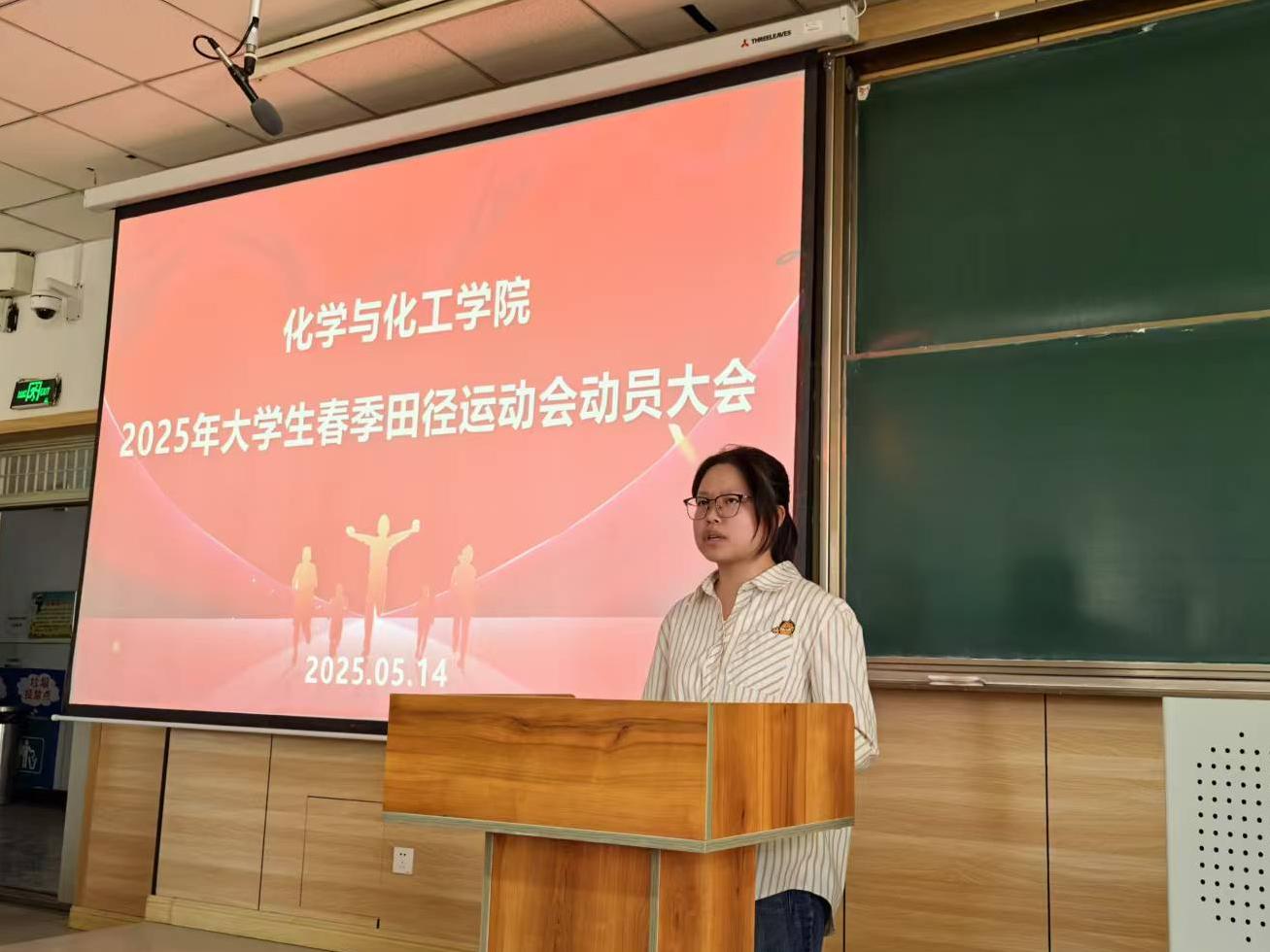 为弘扬体育精神,激发参赛热情,全面部署运动会筹备工作,保障运动会安全、有序进行,2025年5月14日中午,化学与化工学院在09203H召开了2025年大学生春季田径运动会动员大会。学院党委副书记蔡文涛、团委书记李艳、学生科科长赵芸芳、全体辅导员老师、参赛运动员、方阵成员、运动会工作人员、坐场学生、及学生干部等共200余人齐聚一堂、共同吹响备战运动会的集结号。