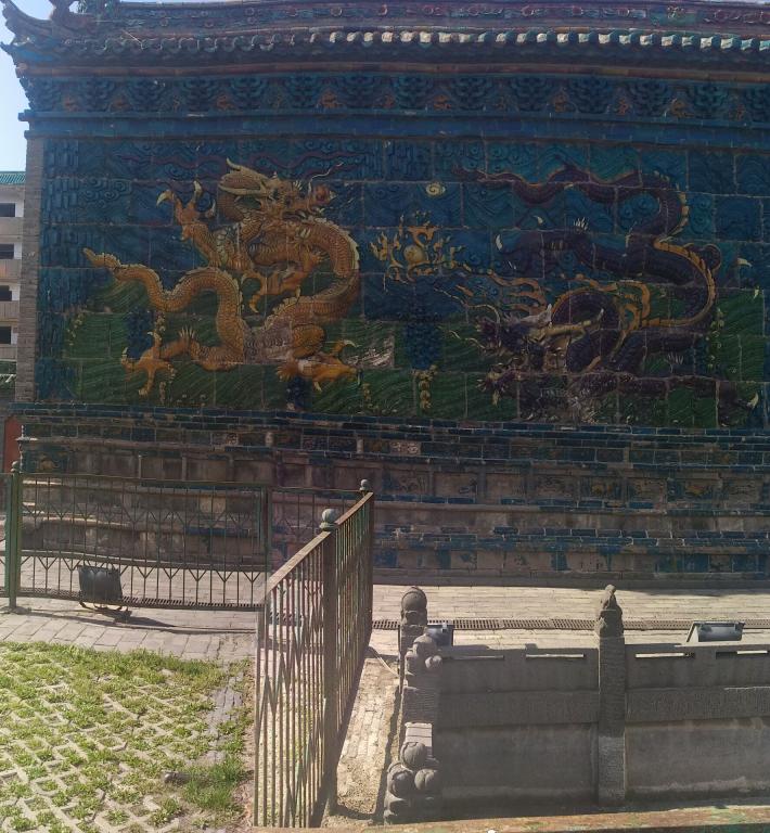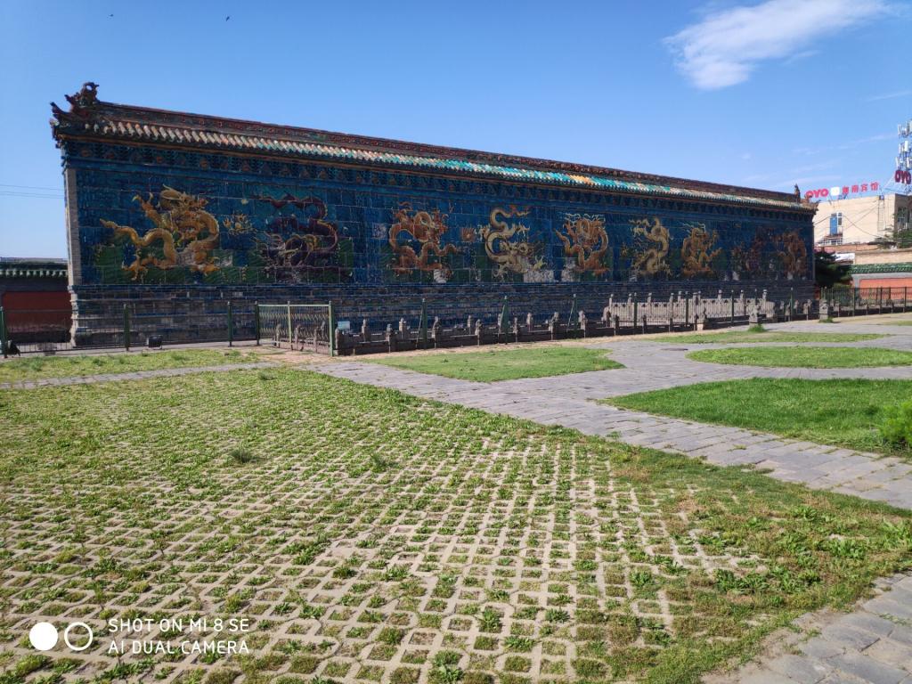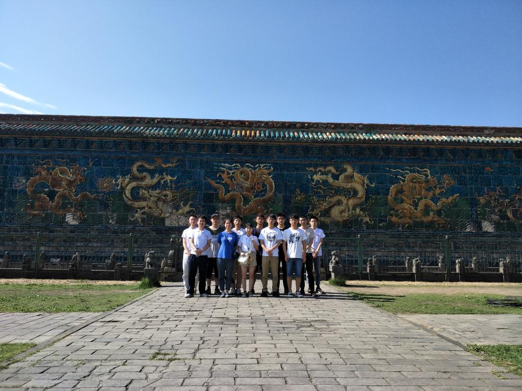 九龙壁,建于明代洪武年间,距今已经有600多年的历史,是明太祖朱元璋第十三子代王朱桂府前照壁,壁面由426块特制五彩琉璃构件拼砌而成。为探索中国传统随壁建筑文化,2019年7月15日,我们中北大学化工传统文化暑期实践团开始了第六天的暑期实践。