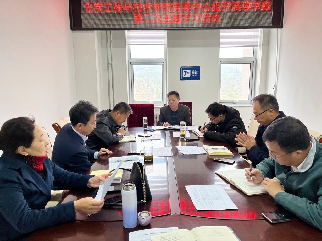 2021年10月19日下午,化学工程与技术学院党委在科学楼C座714会议室,开展了读书班第二次主题学习活动,学院全体院领导、党委委员参加了学习,活动由院党委书记廖海洪主持。