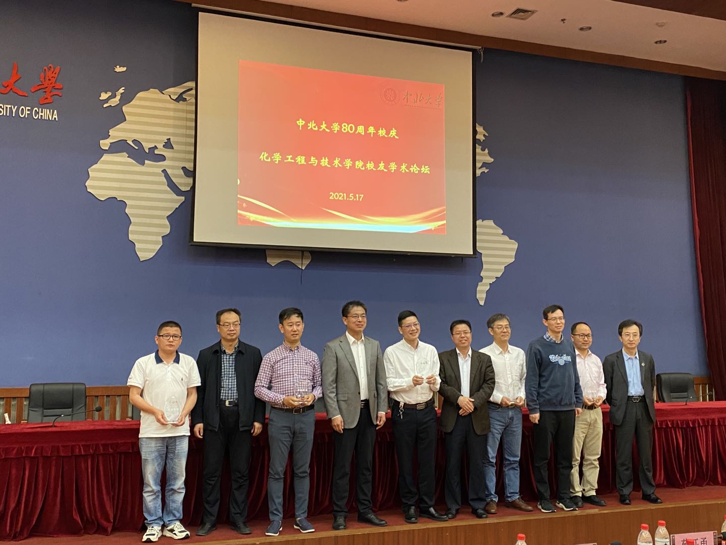 春华秋实挺立时代丰碑,芝兰满室共襄中北腾飞。为庆祝中北大学建校80周年,5月17日上午,化学工程与技术学院杰出校友学术论坛于中北大学图书馆五层学术报告厅举行。学院特邀杰出校友蔡开勇教授、王连军教授、孙勇教授、朱丽华副教授、毛帅副教授为主讲人。院党委书记廖海洪、院长祁贵生、院党委副书记李云、副院长王海宾、胡志勇以及部分师生代表参加报告会。院长祁贵生主持报告会,并致欢迎辞,介绍了主讲校友的科研成果和突出成绩。