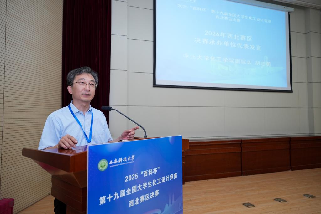 2025年7月26日—7月30日,由中国化工学会、中国化工教育协会主办,西安科技大学承办的2025年“西科杯”第十九届全国大学生化工设计竞赛西北赛区决赛在西安科技大学成功举办。中北大学由胡志勇副院长带队,竞赛指导老师王艳红、马忠平、郭婧、董婷带领“绿色砜向标”团队(参赛学生:(朱磊、刘海贤、豆禕帆、刘俊彦、魏晨涛)参加了此次竞赛,并获得西北赛区特等奖及“工程图纸”专项奖。同时,教学副院长胡志勇教授(竞赛委员会副主任单位)代表全国大学生化工设计竞赛西北赛区竞赛委员会在开幕式致辞,在闭幕式上代表中北大学申请并获得第二十届大学生化工设计竞赛西北赛区决赛承办学校。